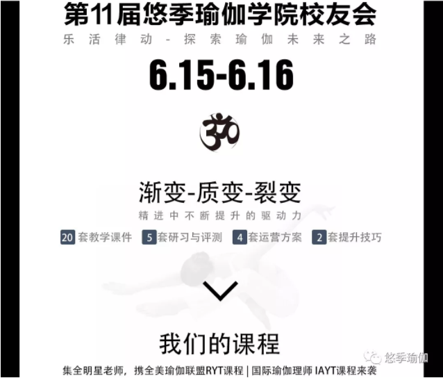 错过亚洲瑜伽大会的伽人们,一定不能错过6.15的北京悠季瑜伽学院校友会之默瀚导师还原AYC现场课程,价值 3000 元的课程全曝光,好课不容错过……