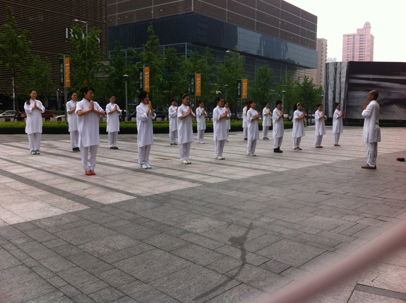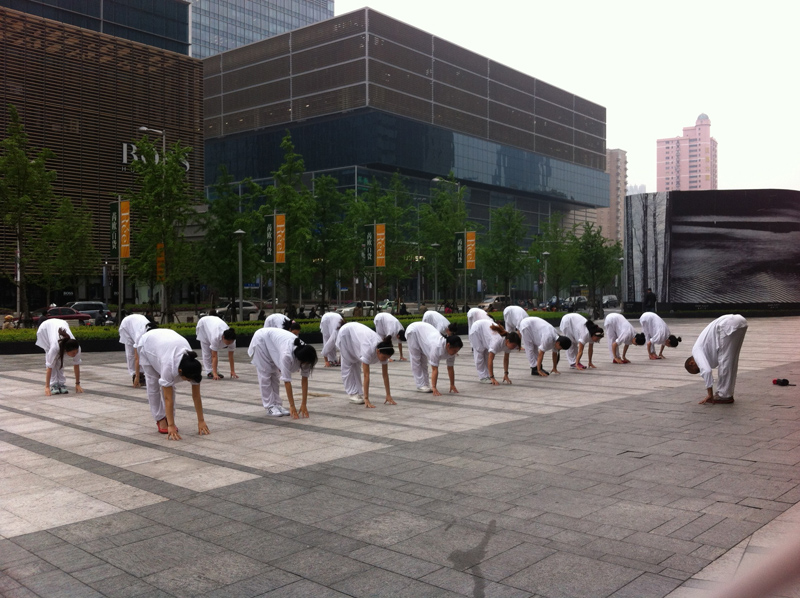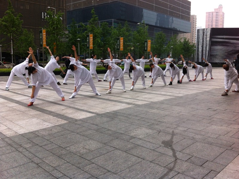 4月22日世界地球日,悠季瑜伽上海教学总监莫汉达老师(印度瑜伽大师)引领19名悠季瑜伽TTC初级班学员于今晨8点15分在静安区芮欧百货门口奉献一场不插电的“哈他瑜伽”快闪活动。